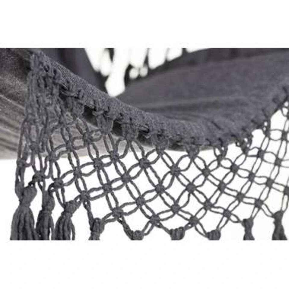 Details van de hangende tuinstoel: De hangmat is gemaakt in een grijze kleur. Hij meet 115 x 60 x 90 cm en is ideaal voor 1 persoon.