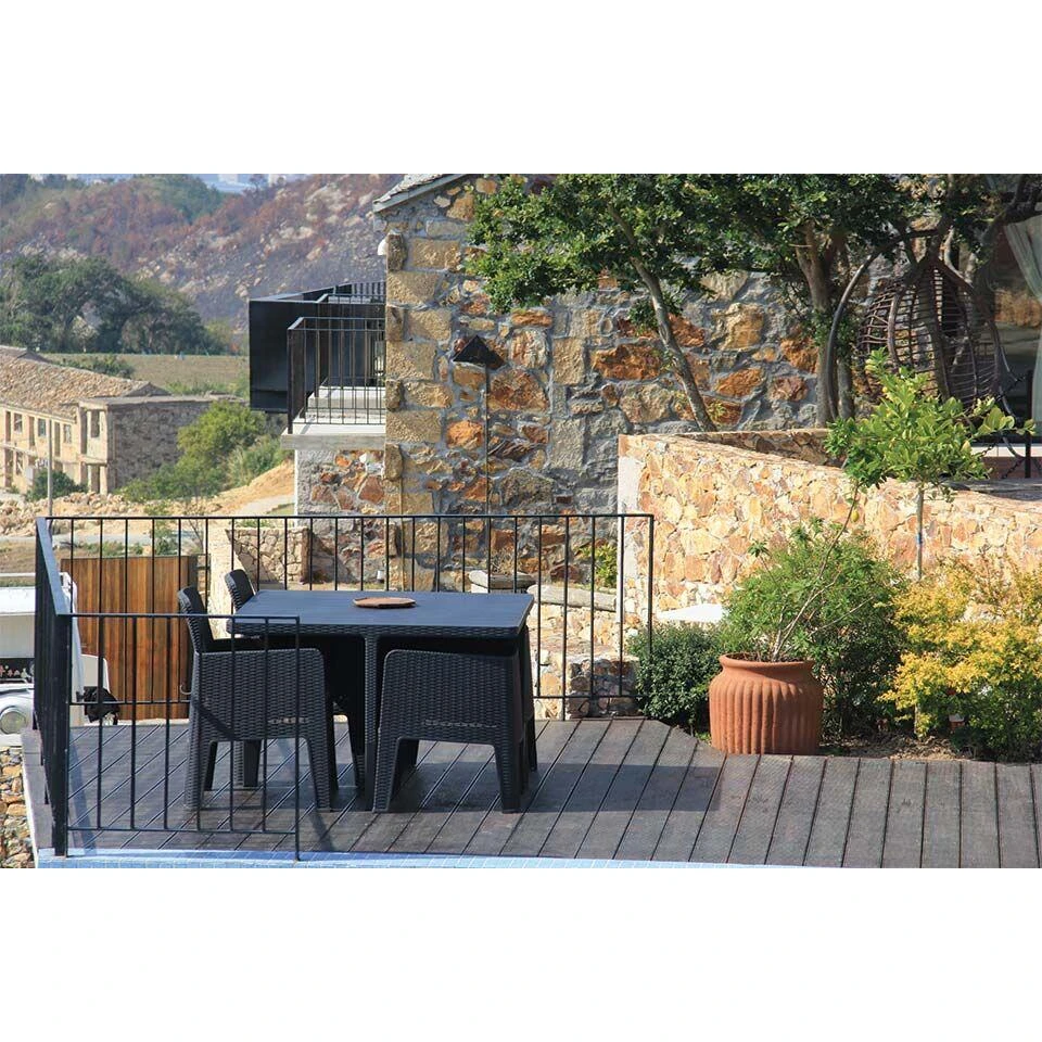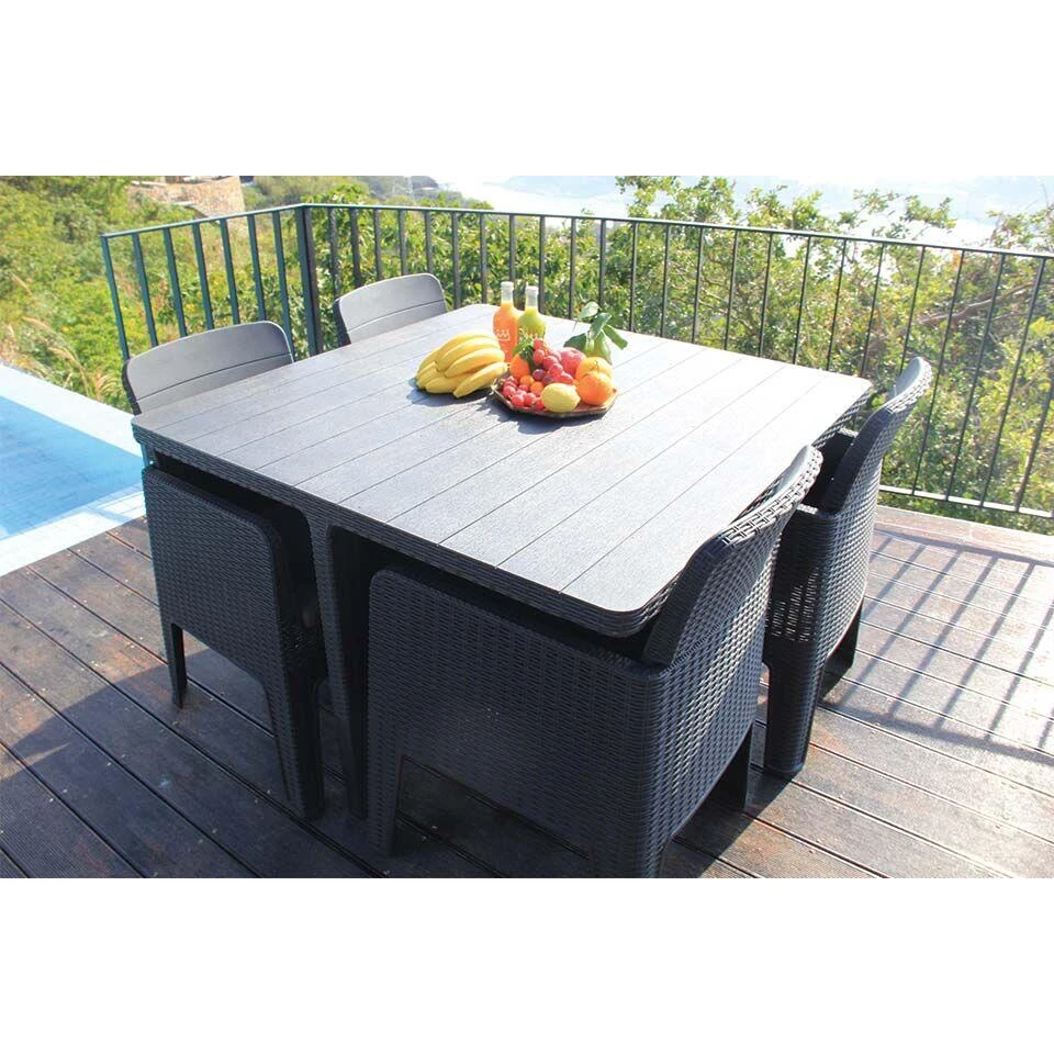 De tuinset Brussel bestaat uit een tuintafel met 4 unieke tuinstoelen. De tuinset is gemaakt van hoogwaardig kunststof, dus heel gemakkelijk schoon te houden!. De tuinset is prettig in gebruik, doordat u de rugleuning in kan klappen kunt u de stoelen geheel onder de tafel schuiven. Zo blijven ze ook nog eens schoon en droog! Met de bijhorende kussens kunt u maximaal genieten van de tuinset. Ziet u deze tuinset al in uw tuin staan?