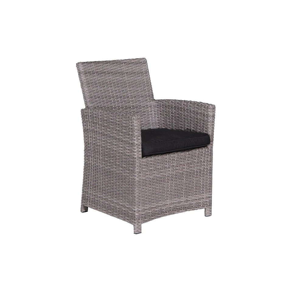 De Jaru lounge dining stoel is een populaire stoel van kwaliteitsmerk Garden Impressions. Deze stoel heeft uiteraard een aantrekkelijke prijs, maar combineert ook mooi bij de complete Jaru lounge dining set. Door het comfortabele zitkussen kun je echt uren heerlijk genieten in deze stoel. De Jaru lounge dining stoel is vervaardigd uit een onderhoudsvrij aluminium frame. Om het frame is met de hand wicker gevlochten. Het gaat om weerbestendig 2-half wicker kunststof vlechtwerkdraad gevlochten in de kleur organic grey. Het wicker is gemaakt van een stevig, hoogwaardig kunststof waardoor de set zeer duurzaam is. Deze stoel wordt compleet geleverd met hoogwaardige kwaliteit polyester zitkussen. Het zitkussen is bovendien voorzien van een rits, waardoor het hoesje met de hand gewassen kan worden. Het kussen is niet 100% waterdicht, maar is wel voorzien van een waterafstotende coating. Dit is vooral erg praktisch als er bijvoorbeeld op het kussen wordt gemorst met drinken. Je veegt het vocht er namelijk gemakkelijk weer af. Na gebruik kan het kussen opgeborgen worden in de schuur of in een mooie kussenbox. Uiteraard kan de Jaru stoel los aangeschaft worden. De stoel combineer je eenvoudig bij diverse tafels van verschillende materialen. De stoel past qua vormgeving ook erg mooi bij de bijpassende Jaru lounge dining set. Hiermee kun je comfortabele extra zitplaatsen creëren. De Jaru lounge dining stoel en loungesets zijn leverbaar in verschillende mooie kleurstellingen. De afmetingen van deze stoel zijn: B 61 x D 66 x H 89 cm.