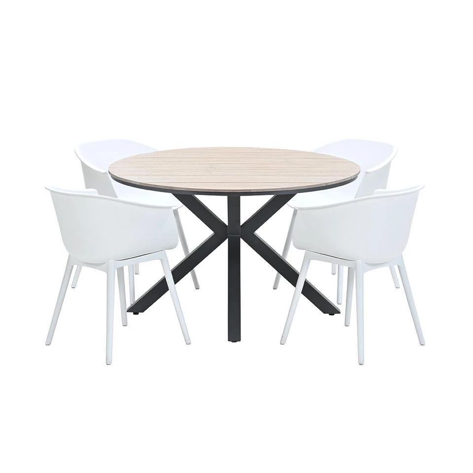 Ben jij op zoek naar een ronde tuinset met mooie kunststof tuinstoelen? Dan is deze 5 delige Lexy tuinset met Tulli tuintafel wellicht iets voor jou.