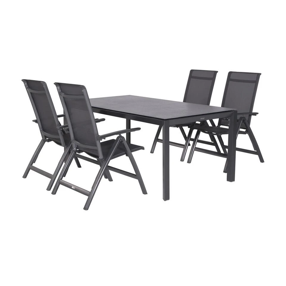 Op zoek naar een comfortabele tuinset? Deze vijfdelige tuinset van kwaliteitsmerk Garden Impressions is van alle gemakken voorzien. De tuinset bestaat uit vier Santana verstelbare tuinstoelen en een Palmas tuintafel van 160 bij 90 cm. De Santana verstelbare tuinstoel is een heerlijk relaxte stoel. Zo kun je heerlijk actief aan een tafel zitten met deze, maar ook heerlijk onderuit zitten en genieten van een goed boek in de zon. De rugleuning van deze stevige verstelbare stoel zet je met gemak in de gewenste stand naar achteren. De Palmas tafel is een goede keuze. De Palmas tafel heeft een uitstekende prijs-kwaliteit verhouding. Van deze tafel heb je gegarandeerd jarenlang plezier.