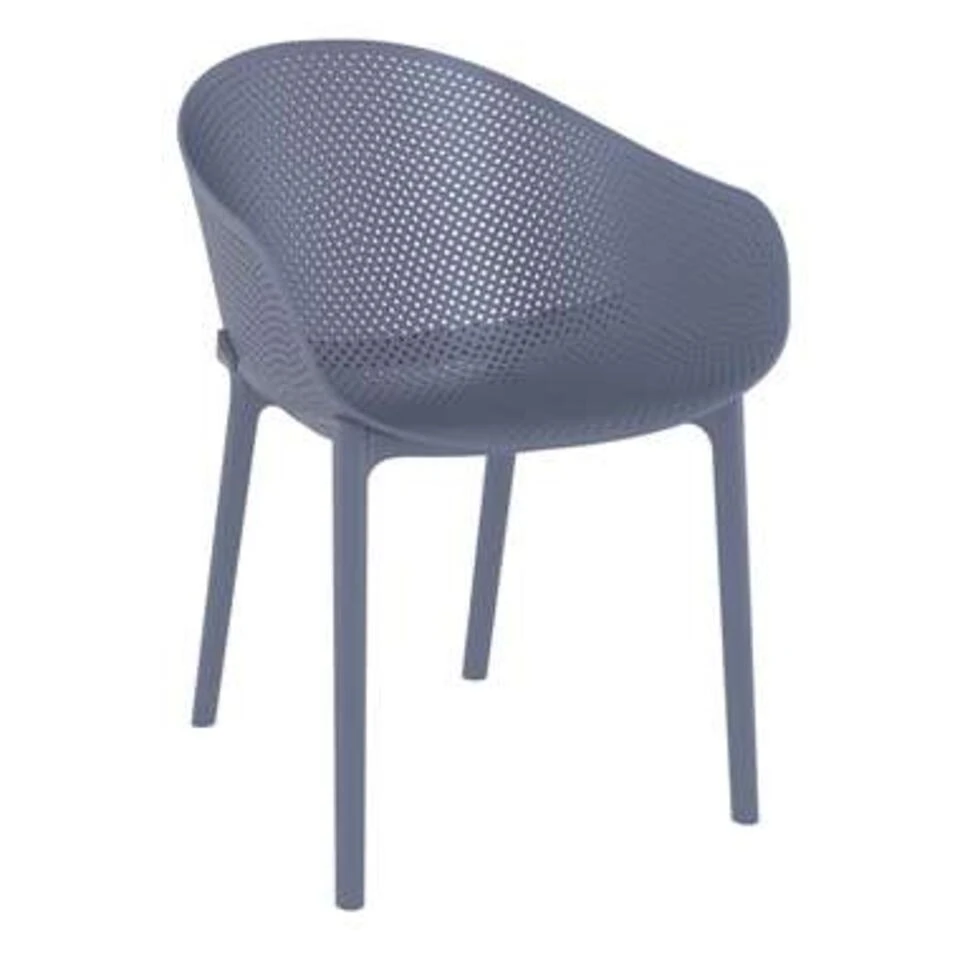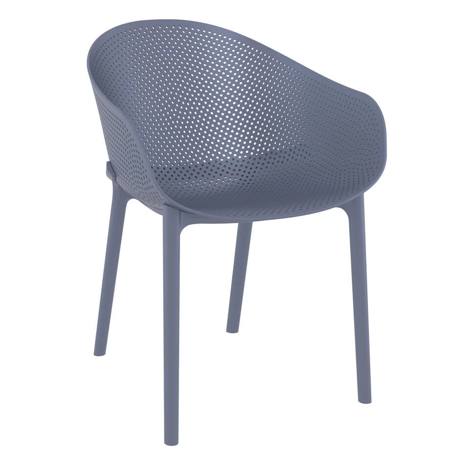 De Sky kunststof tuinstoel heeft een prachtige moderne uitstraling. De set van 2 stuks van kwaliteitsmerk Garden Impressions is gemaakt van een hoogwaardig en stevig kunststof in de kleur donker grijs. De kunststof Sky dining stoel is goed te combineren met een teakhouten tuintafel. Het kunststof van de tuinstoel is onderhoudsvrij. De stoel heeft een mooi motief en heeft allemaal gaatjes in de stoel. Direct genieten van de tuinstoel als deze is afgeleverd is mogelijk, omdat deze gemonteerd geleverd wordt. De Sky dining stoel heeft een afmeting van 61 cm diepte, 55 cm breedte en een hoogte van 81 cm. De zithoogte van deze mooie kunststof tuinstoel is 45 cm.
