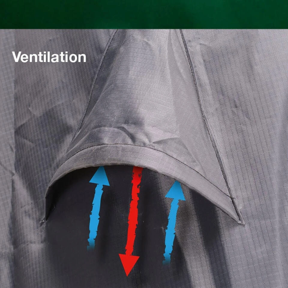 De beschermhoes is voorzien van ventilatie driehoeken zodat het tuinmeubel kan ademen. De tuinset beschermhoes kan gemakkelijk om de tuinset worden bevestigd. Op alle hoeken zit onderaan een elastieken band om de hoes strak te houden. We raden je aan om de tuinkussens niet onder de hoes te laten liggen. Mochten de kussens al nat zijn geworden, is dat niet erg, maar zorg er wel voor dat ze droog worden opgeborgen. De tuinsethoes met afmeting 305x190xH85 cm.