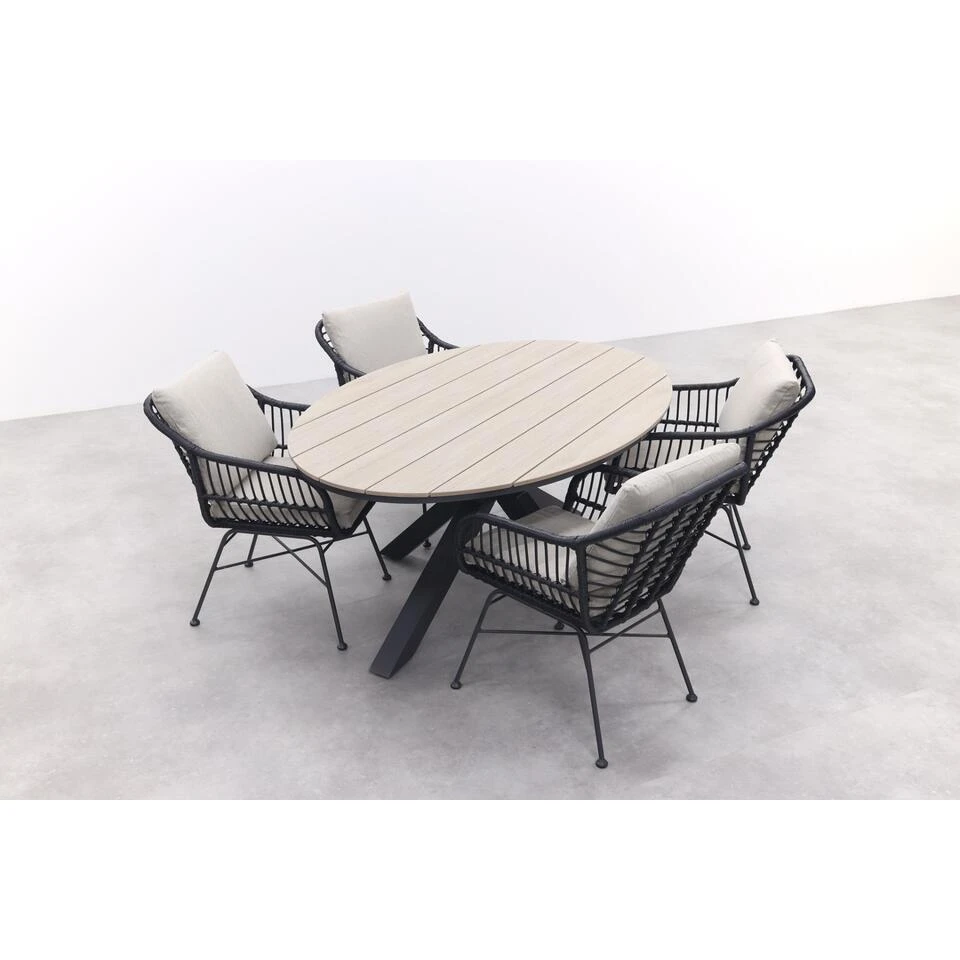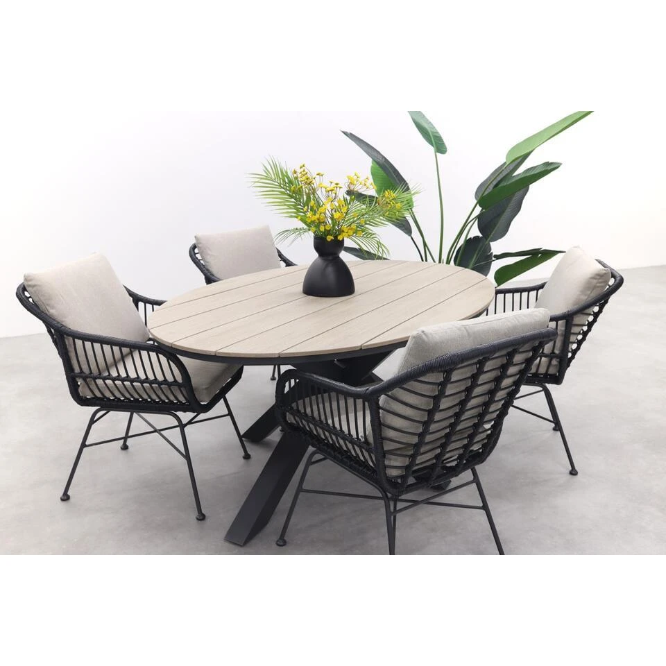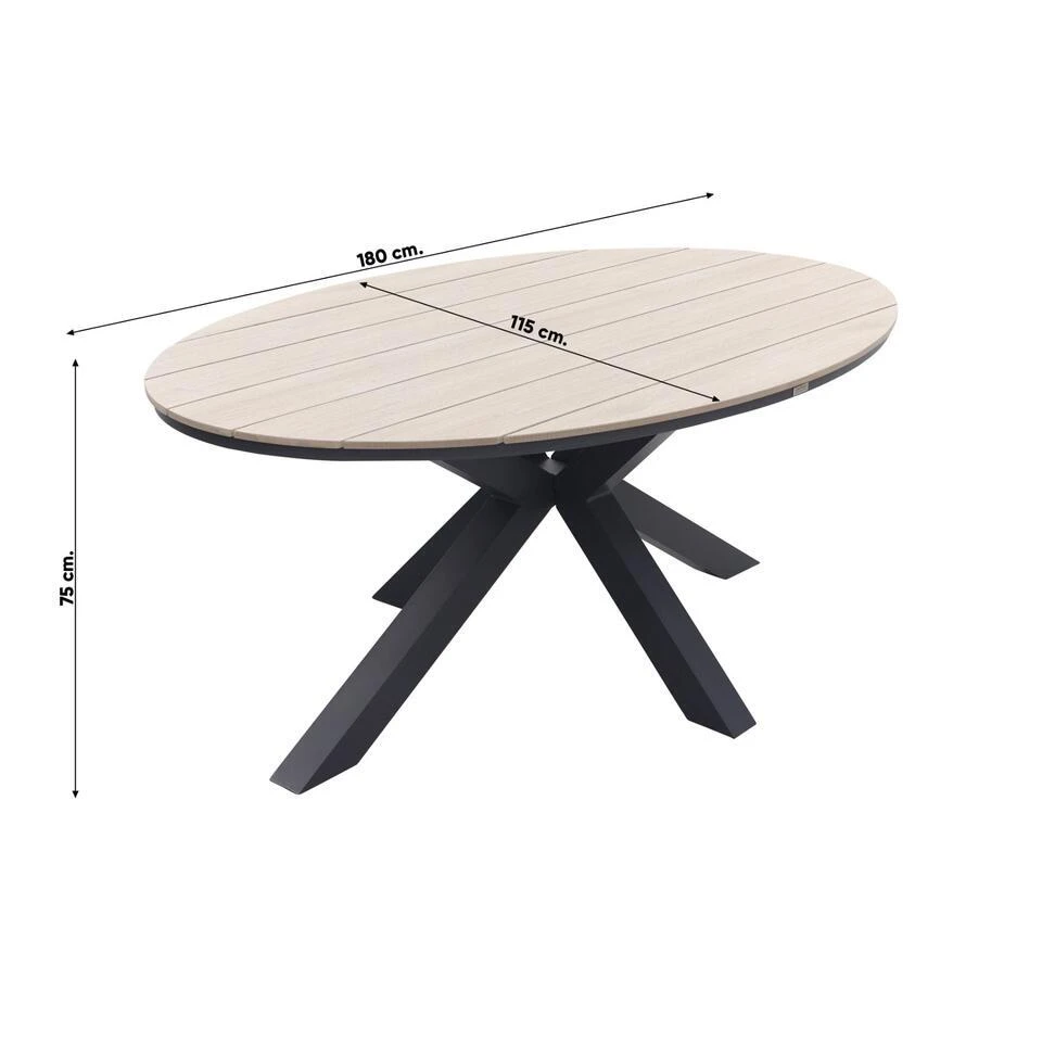 Eigenschappen Garden Impressions Edison ovale tuintafel polywood 180×115 cm.