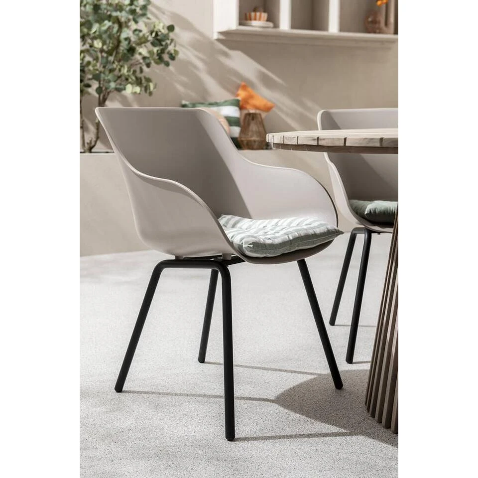 De Hartman kuipstoel Amaya heeft een zwart aluminium frame en een kunststof zitting met een zandkleurige afwerking. Mede dankzij de comfortabele armleuningen kun je heerlijk ontspannen in je tuin. Deze kuipstoel is beschikbaar in verschillende kleuren. Ze zijn weerbestendig, maar buiten het tuinseizoen om kan een beschermhoes nooit kwaad.