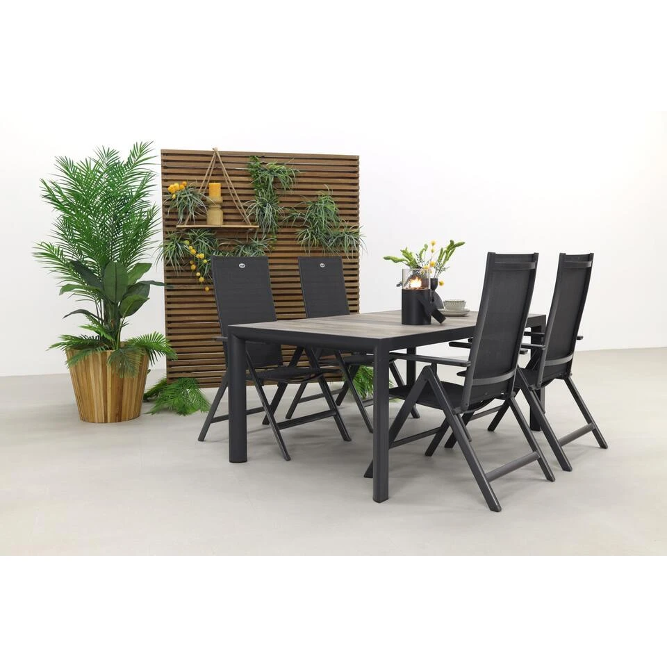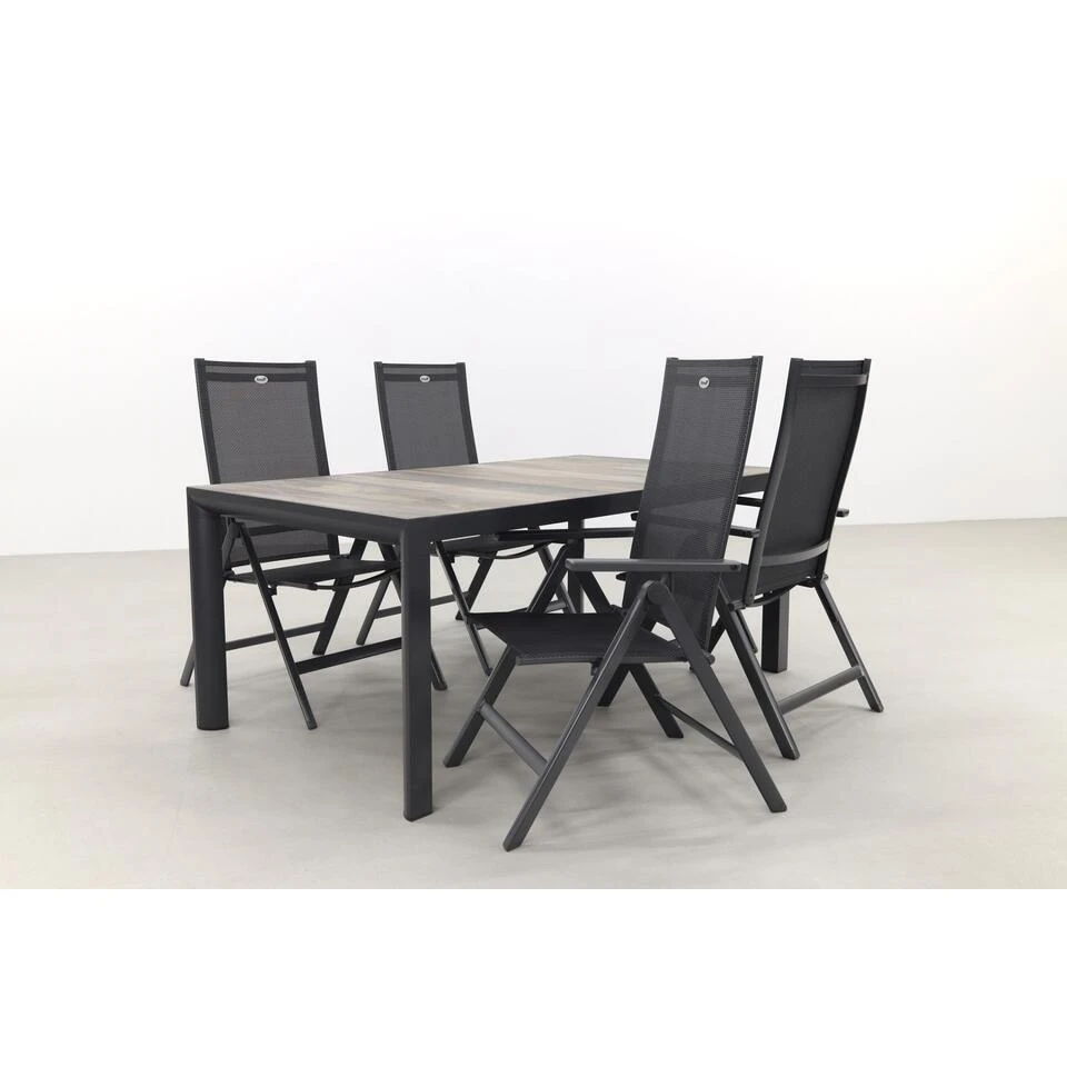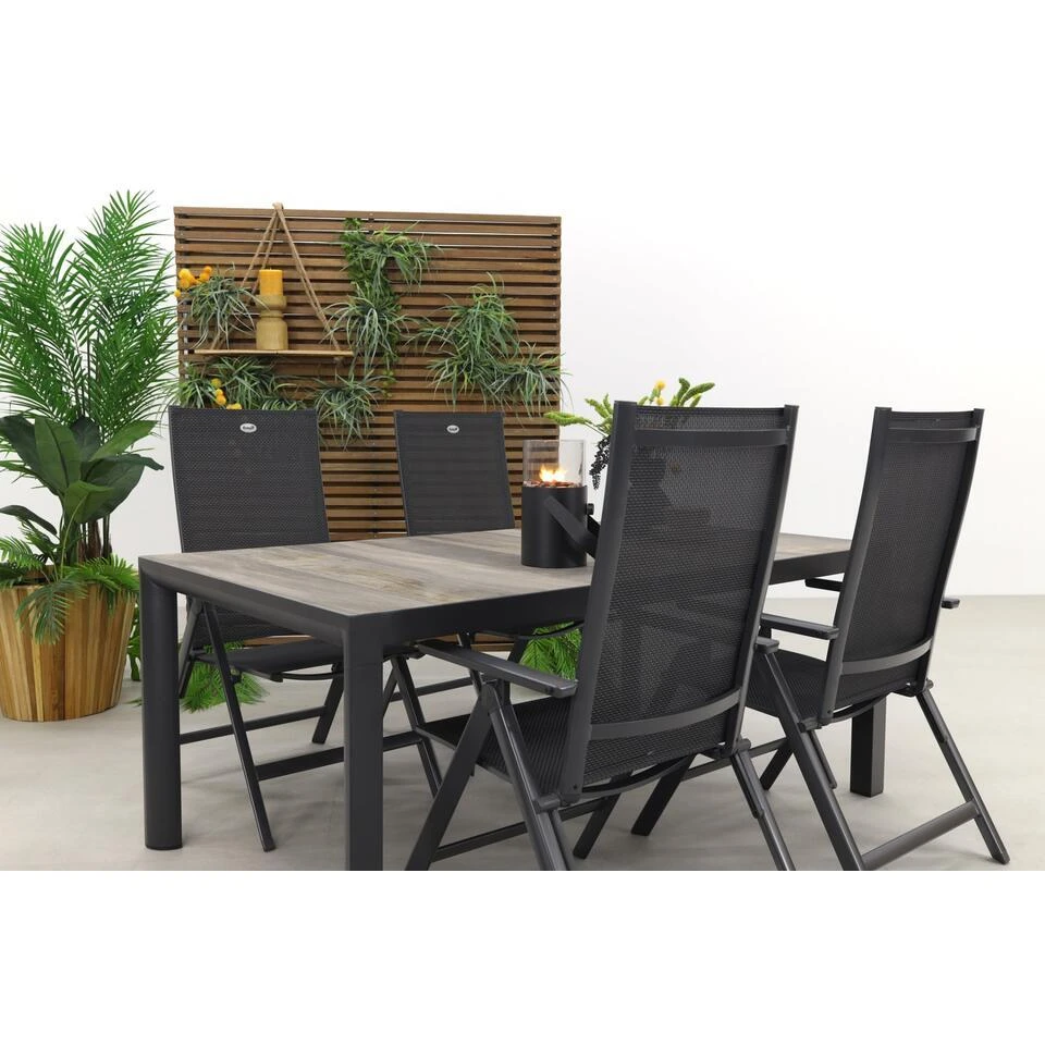 Op zoek naar een verstelbare tuinset? Dan is deze Hartman Napoli kings tuinset iets voor jou! Deze 5-delige tuinset bestaat uit 4 verstelbare Hartman tuinstoelen en 1 Kings tuintafel (180×100 cm.). De set heeft een stoere look door de combinatie van een keramische tuintafel en tuinstoelen met een aluminium frame. Deze onderhoudsvriendelijk set zit erg lekker door het stevige textileen doek. Bestel deze set gemakkelijk online!