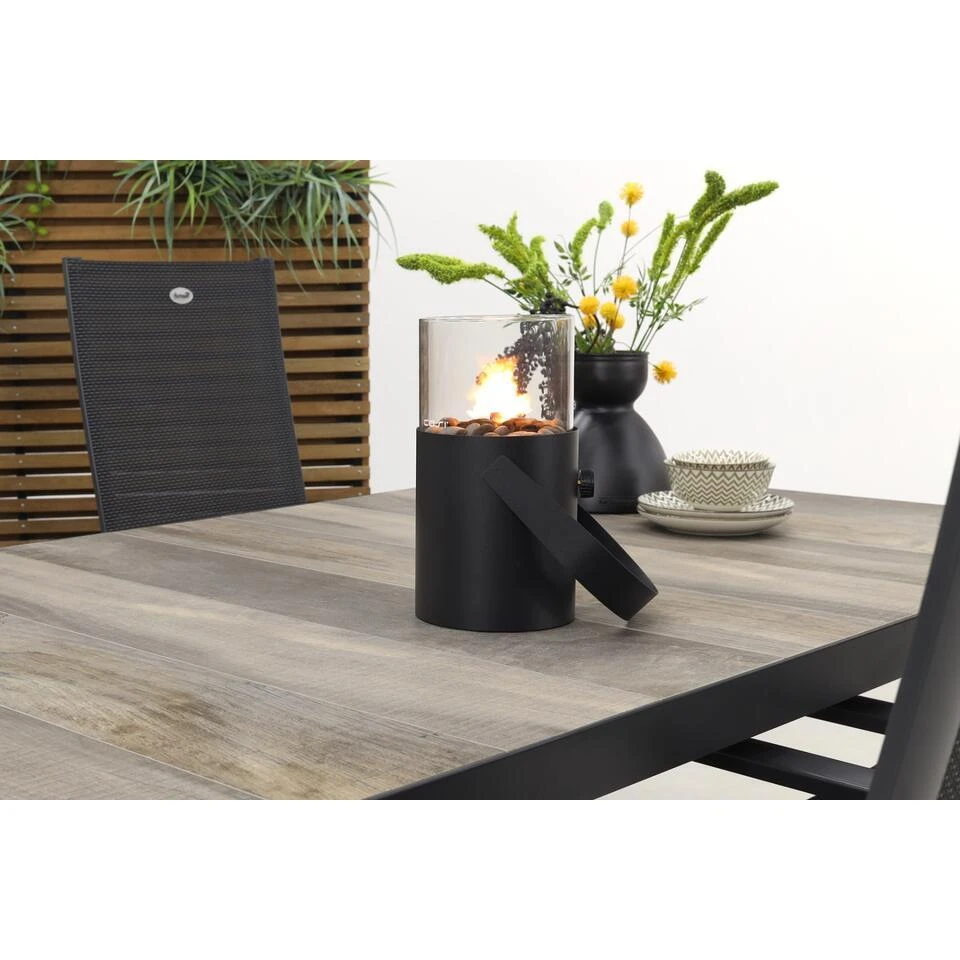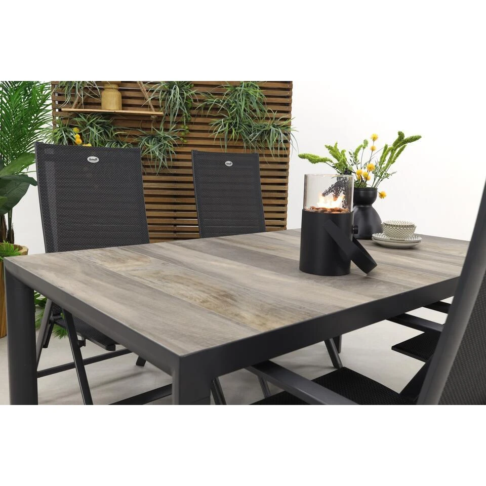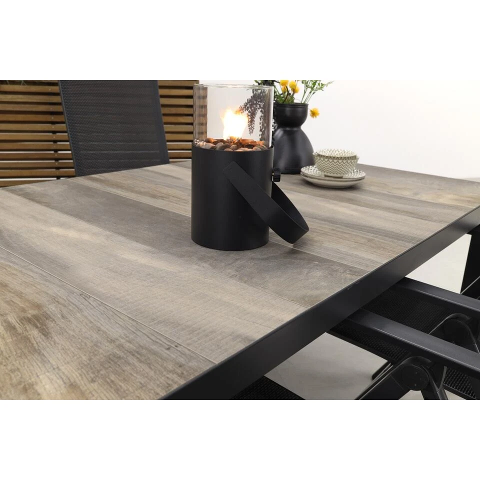 De tuintafel kenmerkt zich door zijn stoere looks en de stevigheid. Het tafelblad is gemaakt van keramiek. Keramiek is steen dat erg hard is en daarmee uitermate geschikt is als tafelblad. Dit keramiek heeft een houtlook wat de tafel een mooie uitstraling geeft. Het frame van deze tafel is gemaakt van aluminium.Aluminium is een onderhoudsarm materiaal dat bestand is tegen diverse weersinvloeden. Door het gebruik van deze twee materialen is het een onderhoudsarme tafel die langere tijd mooi zal blijven in je tuin of op je terras!