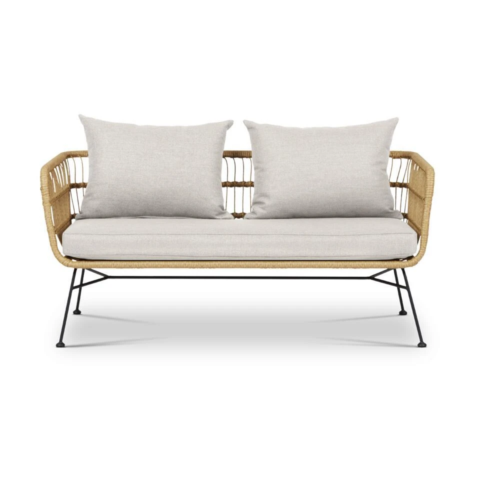 Er is plek zat op deze hippe bank, de 2 zits bank wordt geleverd met goed gevulde 8 cm zit-en rugkussens. De Dax tuinbank is gemaakt van geweven duurzaam polyrattan, wat de bank een Bohemian look geeft. Het onderstel is gemaakt van sterk metaal en heeft dopjes onder de poten. Ga jij voor een Ibiza stijl in de tuin? Ontspan en zak weg op deze comfortabele Bohemian 2 zits bank.