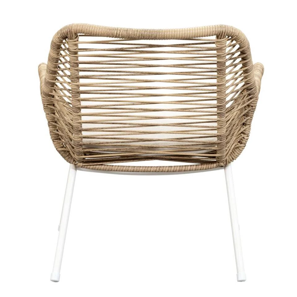 Loungefauteuil Grand heeft een metalen frame met een wicker zitting, rug- en armleuning in een naturel kleur. Het inbegrepen kussen is crèmekleurig en past perfect bij de natuurlijke uitstraling van de stoel. De fauteuil heeft een afmeting van 78x73x71 cm en kun je met mooi weer heerlijk in wegzakken.