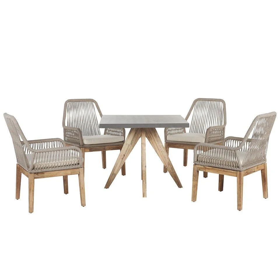 Belangrijkste eigenschappen: Modern terras- en tuinmeubilair, Beton-look voor een industriële look, Hoogwaardig materiaal, Geschikt voor binnen- en buitengebruik, Verwijderbare kussenhoezen