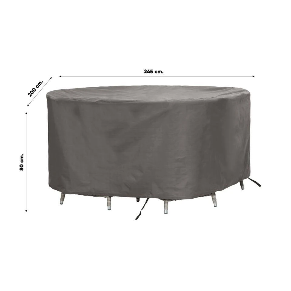 Bescherm je tuinset tegen regen en vuil met deze ovale tuinsethoes van Outdoor Covers. De hoes heeft een ruime maat van 245x200x80 cm en past daardoor goed over ovale tuinsets. Door de ovale vorm sluit de hoes mooi aan en blijft alles netjes bedekt. Zo ziet je tuin er opgeruimd uit, ook als de hoes om je set zit. De neutrale kleur valt niet op en past in elke tuin. Bestel gemakkelijk online.