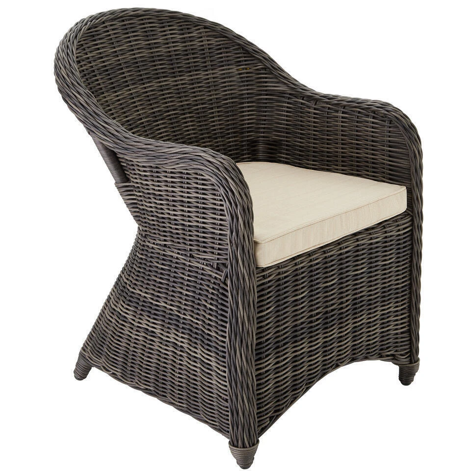 4 Luxe wicker tuinstoelen + kussens Deze prachtige rieten tuinstoel uit wicker wordt een echt hoogtepunt in je tuin, op het terras of balkon. Door het frame van weerbestendig aluminium is de stoel bijzonder licht. Het ronde wicker vertoont met zijn gemodelleerde kleurverschillen optisch geen verschil in vergelijking met natuurlijk vlechtwerk en wicker. Het zachte zitkussen is bijzonder comfortabel en waterafstotend.