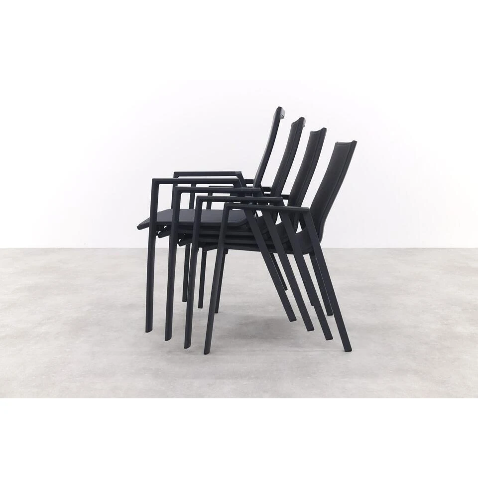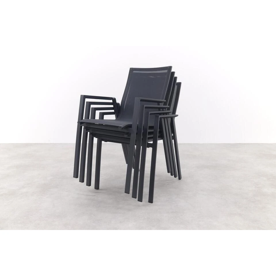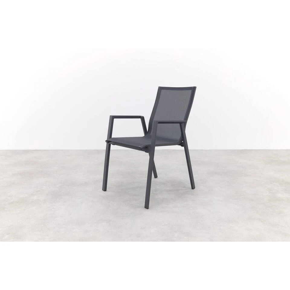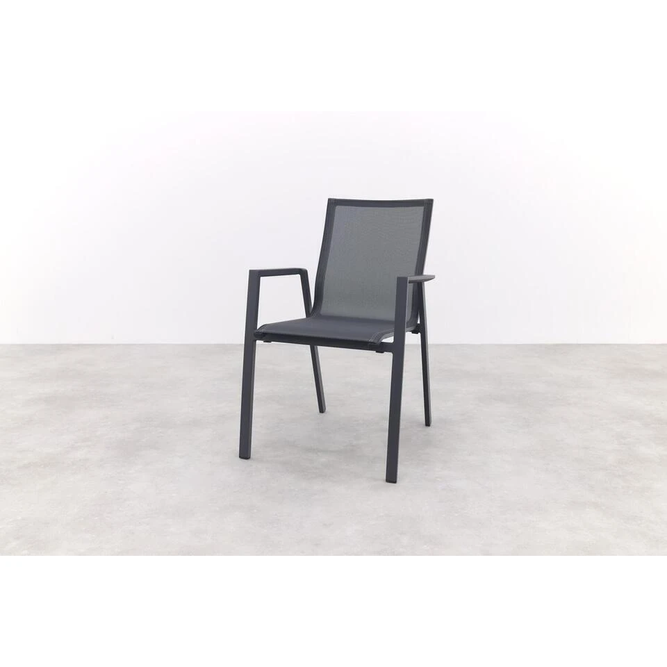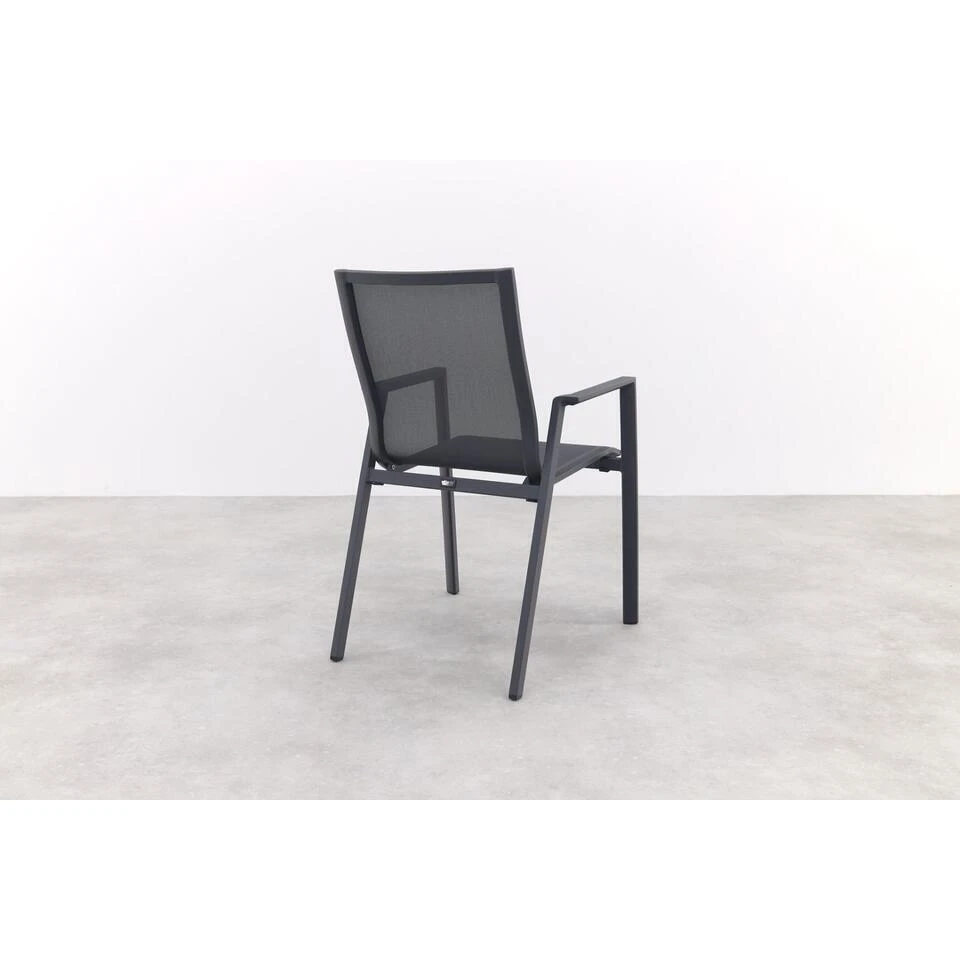 Het frame is gemaakt van aluminium en dus licht in gewicht waardoor de stoel gemakkelijk te verplaatsen is. Voor extra bescherming is het frame afgewerkt met een antracietkleurige poedercoating. De zit en rugleuning van de Atmos stapelstoel zijn gemaakt van textileen. Dit is een geweven nylon draad dat comfortabel aanvoelt. Dus ook zonder kussen heeft de Atmos stapelbare tuinstoel een comfortabele zit