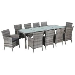 De levering bevat 1 tafel, 10 stoelen en 10 zitkussens. Opmerking: wij raden aan om de set af te dekken wanneer het regent, sneeuwt of vriest.