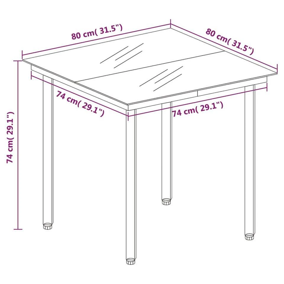 - Afmetingen: 80 x 80 x 74 cm (L x B x H)