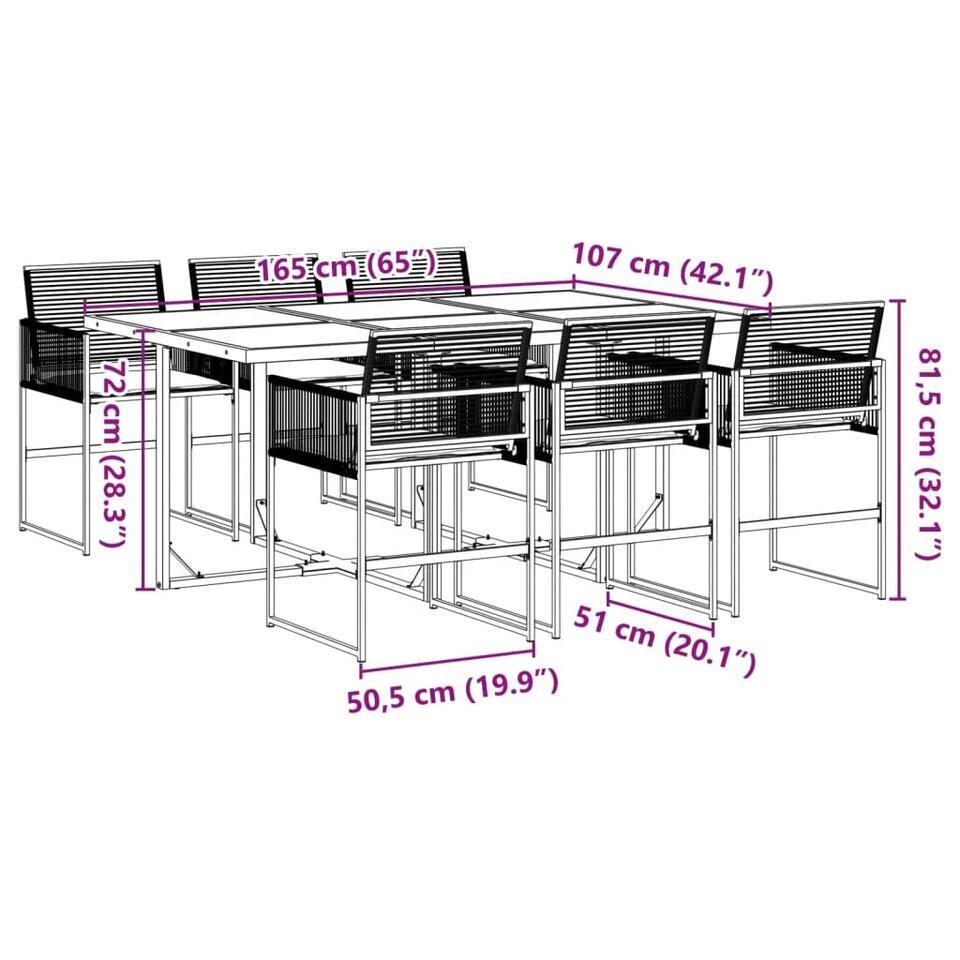 - Materiaal: PE-rattan, gepoedercoat staal en glas