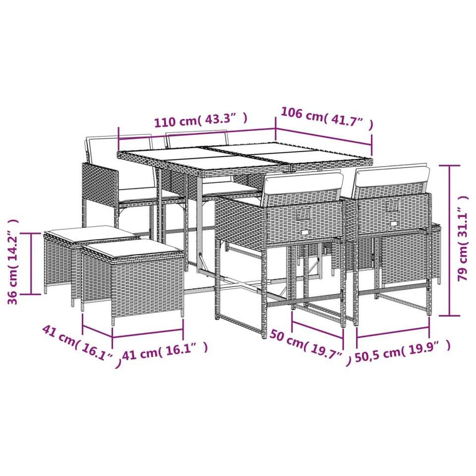 - Compact opbergen: deze stoelen hebben een inklapbare rugleuning, waardoor je ze gemakkelijk onder de tafel kunt opbergen. Wanneer ze zijn ingeklapt, passen ze netjes onder de tafel en vormen ze een ruimtebesparende kubusvorm. Daarnaast kunnen de voetenbanken onder de stoelen worden opgeborgen, waardoor de ruimte-efficiëntie nog verder wordt gemaximaliseerd.