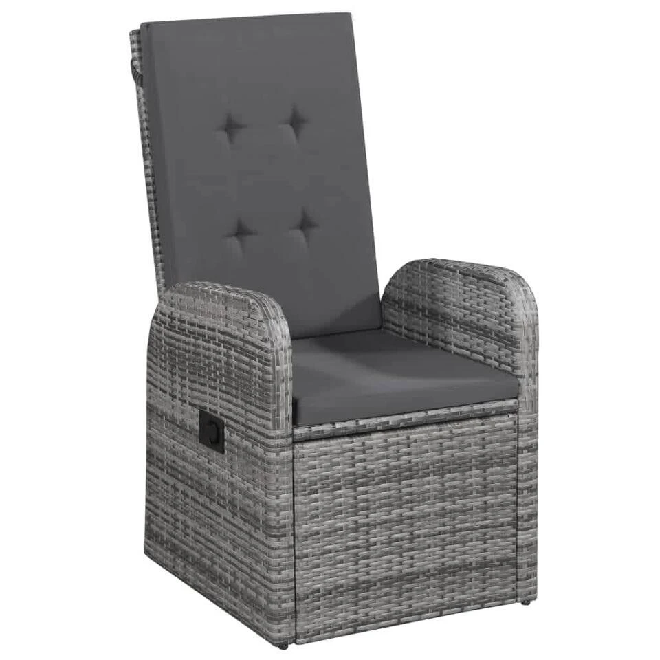 De gepoedercoat stalen frames maken de tafel en stoelen sterk, stevig en geschikt voor dagelijks gebruik. Dankzij het waterbestendige PE-rattan zijn de stoelen gemakkelijk schoon te maken en slijtvast. De rugleuning en voetensteun zijn te verstellen door aan de knop aan de zijkant te trekken. Dankzij de lichtgewicht constructie zijn de stoelen gemakkelijk te verplaatsen en de dik gevoerde zitkussens zorgen voor extra comfort. De onderhoudsarme, polyester hoezen zijn afneembaar en kunnen gewassen worden. Daarnaast is het vlakke, glazen tafelblad eenvoudig schoon te maken met een vochtige doek. Het blad is perfect voor het plaatsen van maaltijden, drankjes en decoratieve spullen.