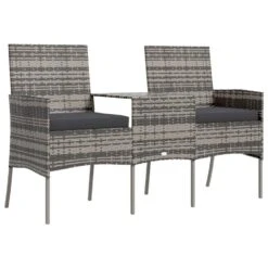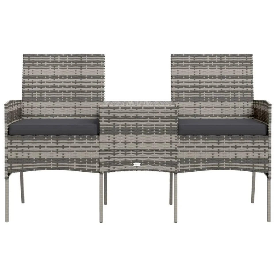 Deze poly rattan 2-zits tuinbank met tafeltje combineert stijl met functionaliteit en wordt de blikvanger van je tuin of je terras.