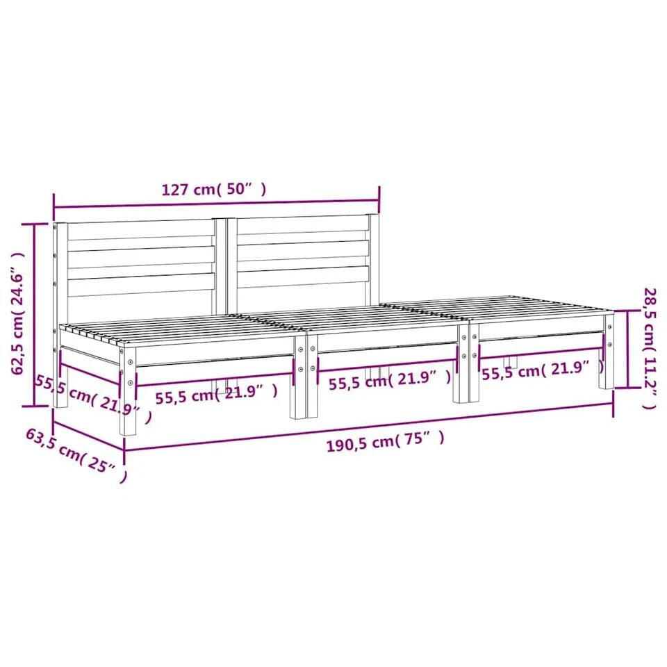 - Totale afmetingen: 190,5 x 63,5 x 62,5 cm (B x D x H)
