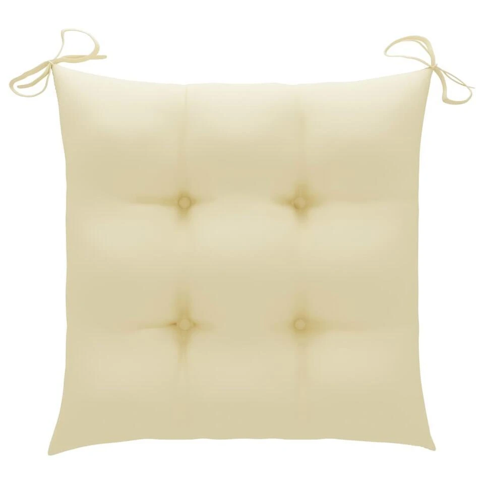 De tuinset is gemaakt van massief bamboe waardoor hij sterk en duurzaam is. Hij is ook weerbestendig, waterdicht en gemakkelijk schoon te maken met een vochtige doek. De tafel en stoelen zijn inklapbaar om ruimte te besparen wanneer ze niet in gebruik zijn. De meegeleverde kussens bieden extra comfort tijdens het loungen. Elk kussen is gemaakt van 100% polyester dat behandeld is om het waterafstotend te maken. Elk kussen heeft twee sets touwtjes voor stevige bevestiging aan de eetstoel.